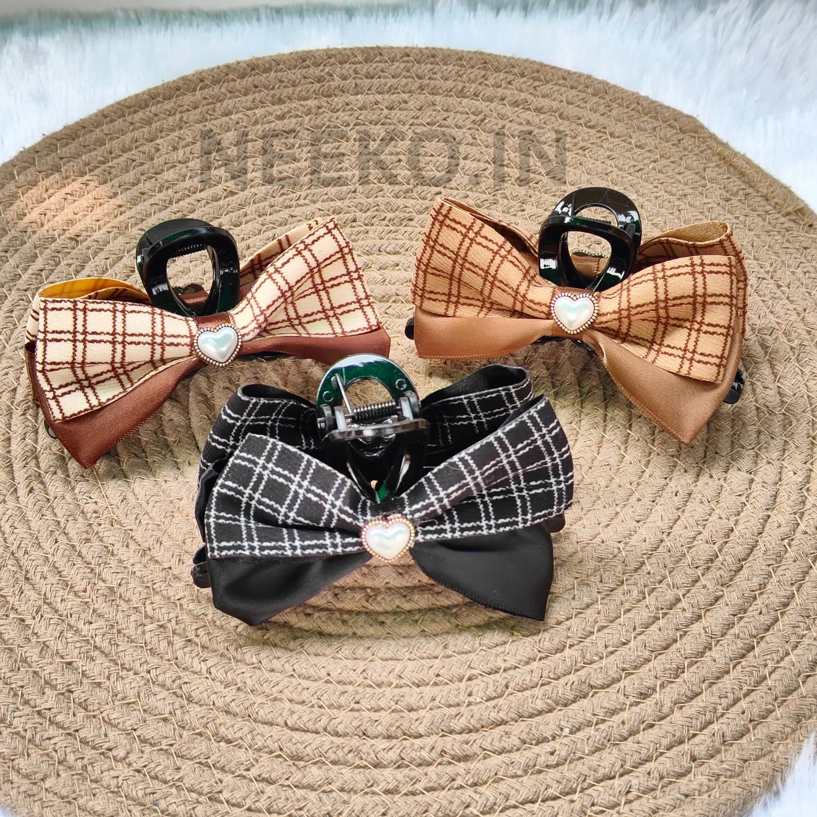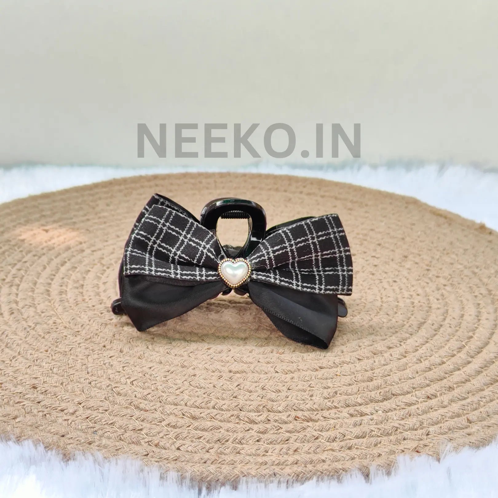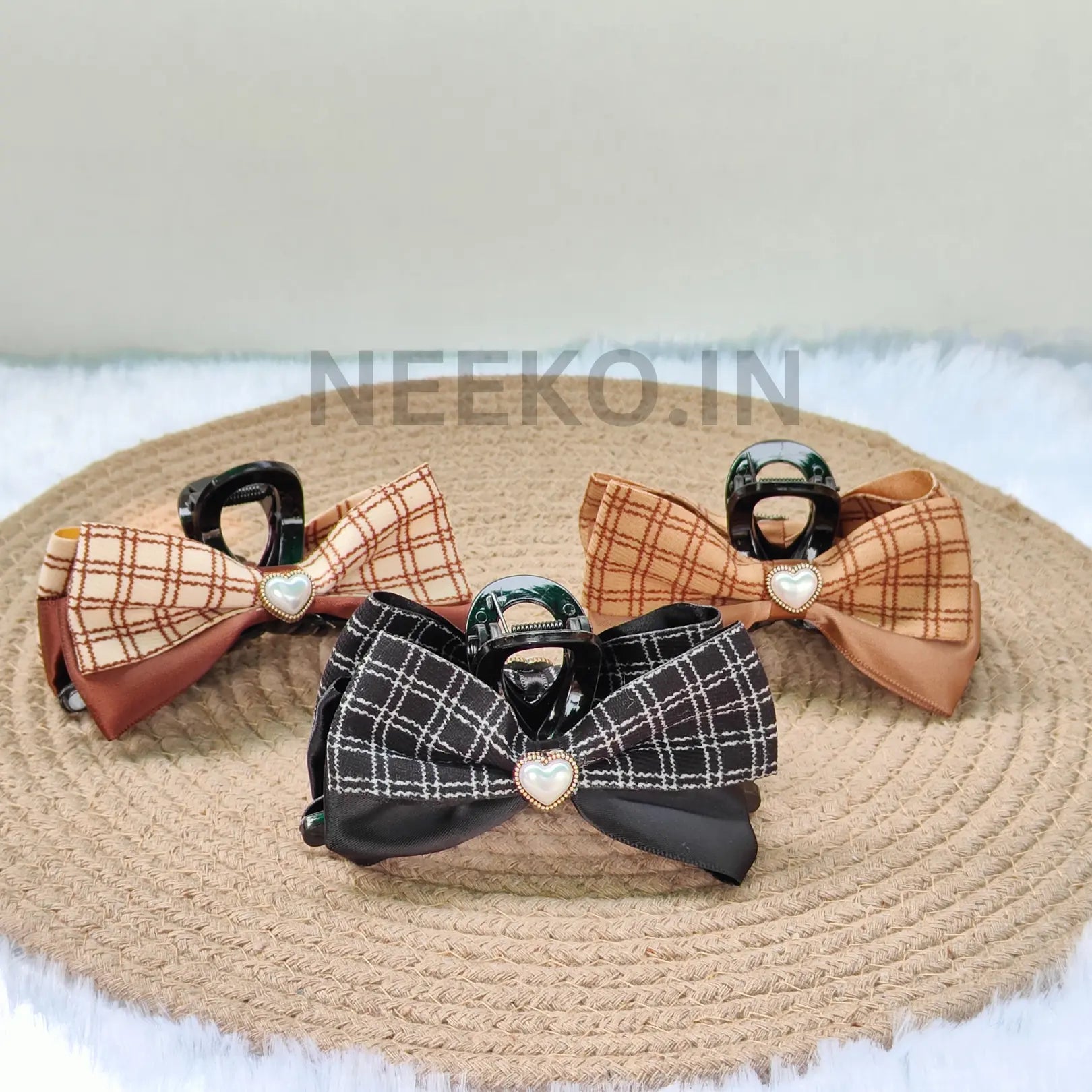 Add a touch of cuteness with our Plaid Heart Bow Claws. Designed with soft check-pattern bows and a pearl heart charm at the center, these clips combine elegance with everyday style. Perfect for casual wear, brunch looks, or gifting, they hold your hair securely while keeping it stylish. 🎀✨