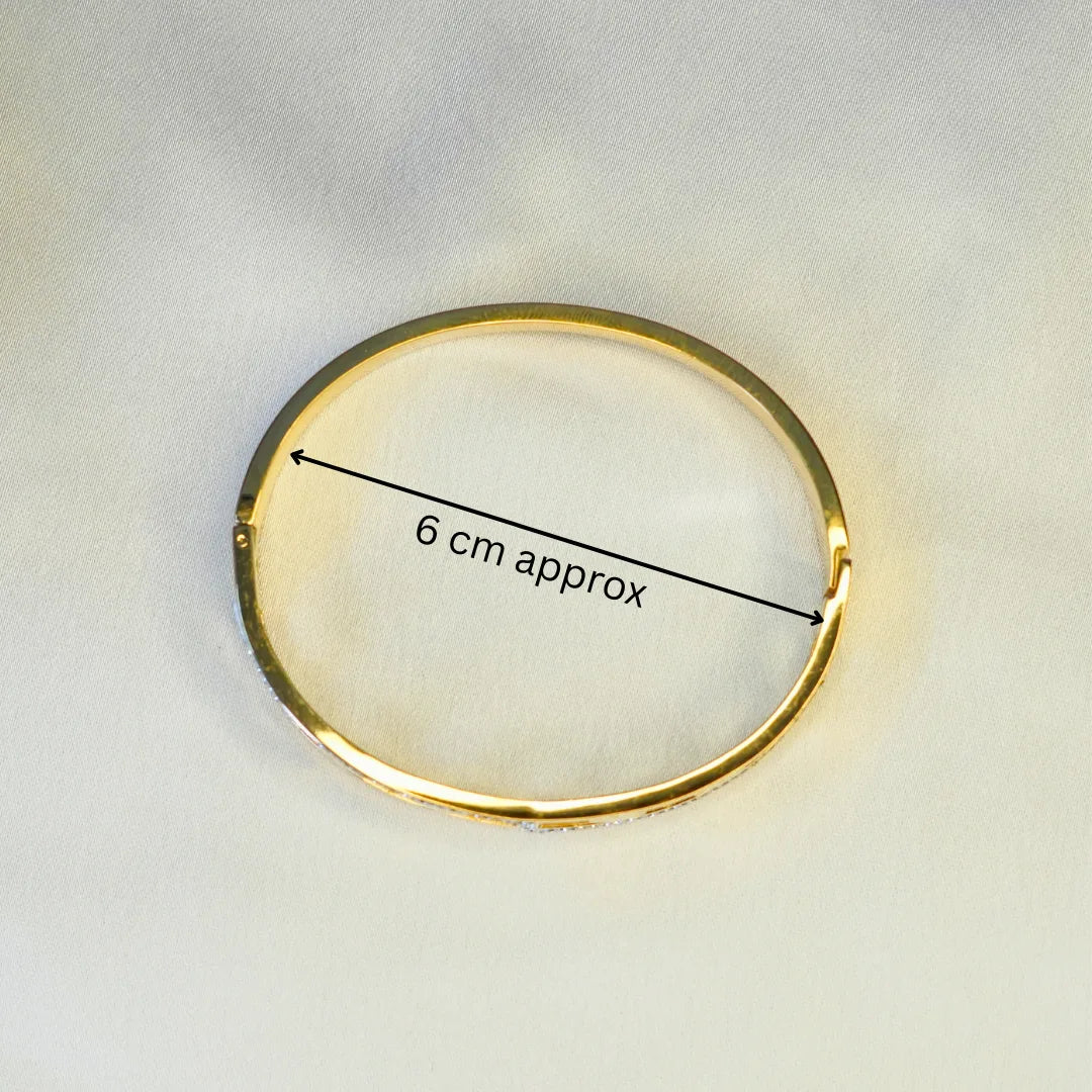 A timeless bangle featuring a delicate row of golden hearts framed with shimmering stones. Symbolizing love and unity, this bracelet is the perfect gift for someone special—or for yourself.